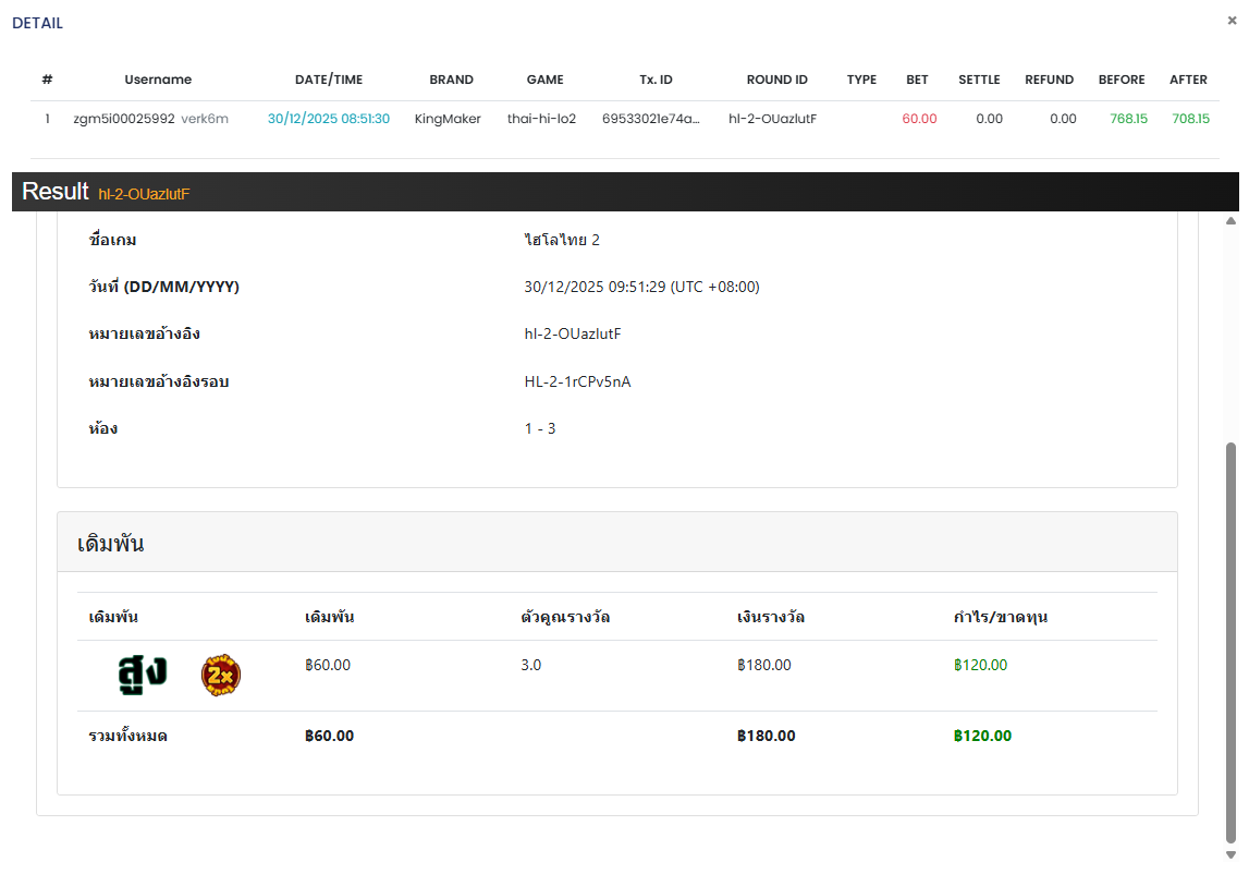 ลูกค้าเดิมพันชนะ Total Win ไม่ปรับยอดให้ค่ะ ไม่พบรายการ settle ในระบบครับ