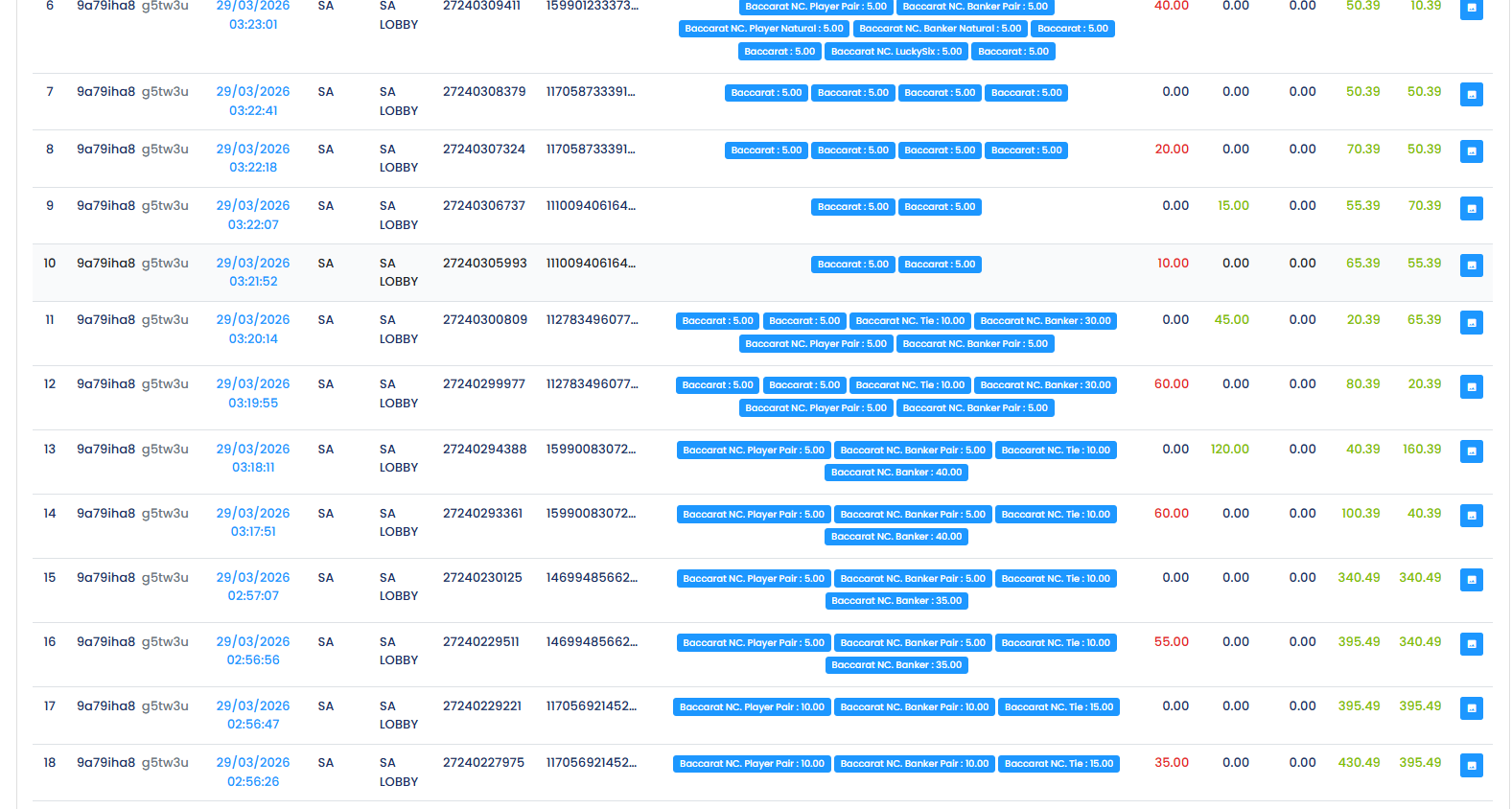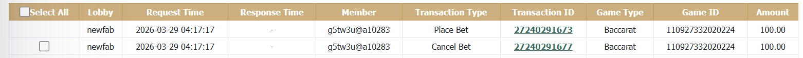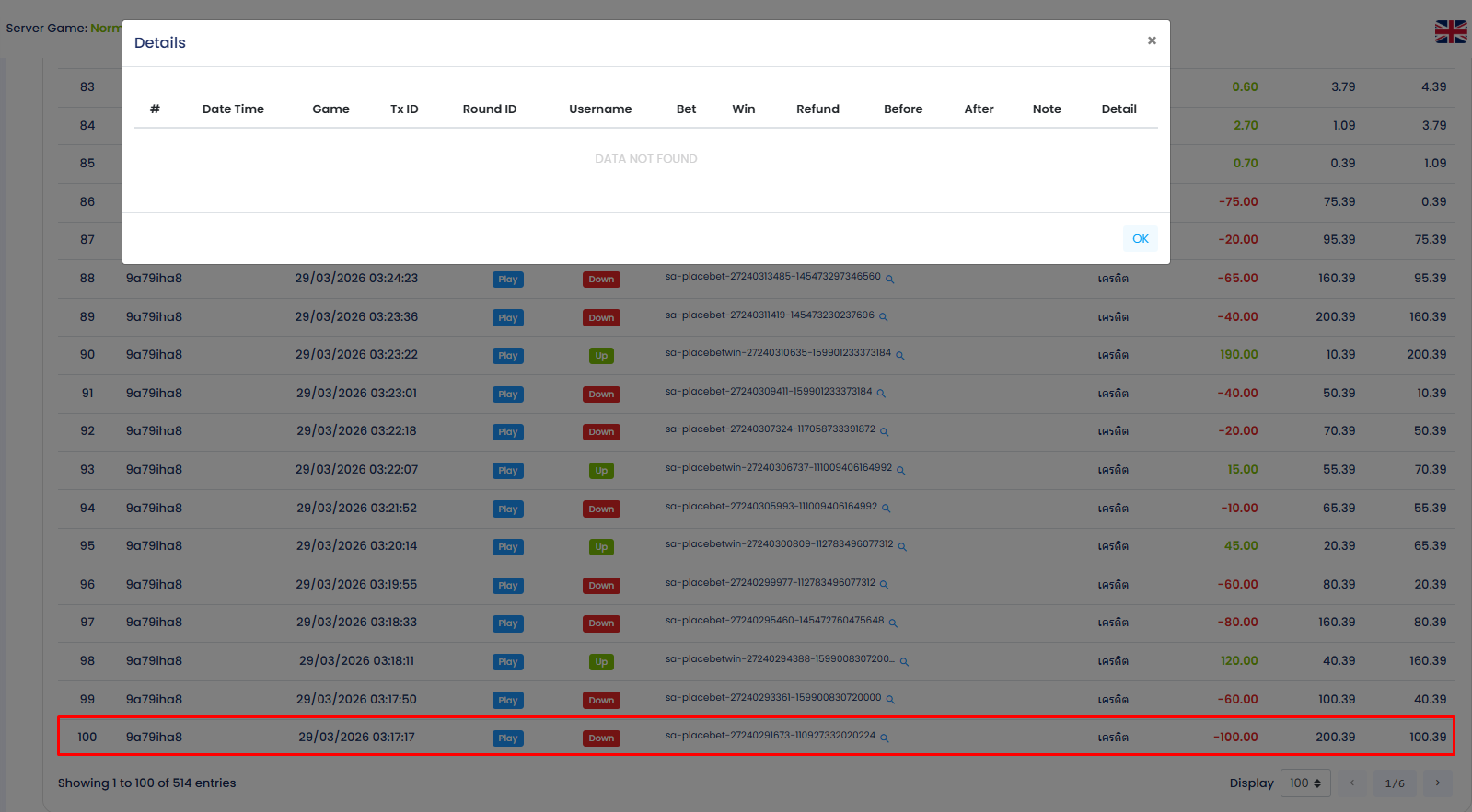 ที่หน้า Game Transaction Report ไม่พบรายการวางเดิมพัน
