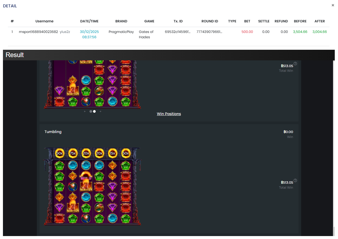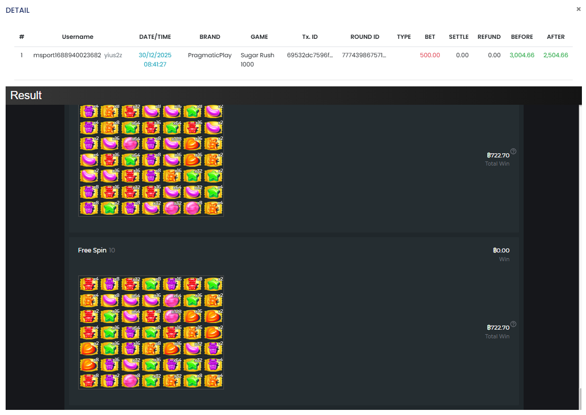 ลูกค้าซื้อฟรีเกมส์และเล่นจนจบแล้ว Total Win ไม่ปรับยอดให้ค่ะ ไม่พบรายการ settle ในระบบค่ะ